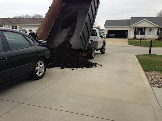 Dirt that I am shoveling into a wheelbarrow and putting in my garden.