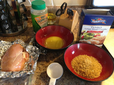 - Mix Panko breadcrumbs and parmesan cheese in another bowl.