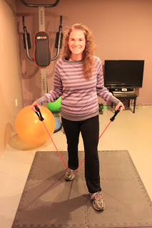 Doing a light weight workout, cardio workout, abs and extended stretching several days