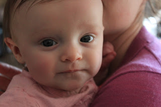 She has been “talking” a lot and giggles all day (unless she is hungry).