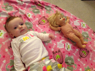 Her sister loves putting dolls near her and taking care of them while I take care of Hannah.