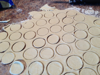 - Use cookie cutters to cut the dough out. I used a small circle that actually used to be a glass votive candle holder! Just get creative with what you have in your house.