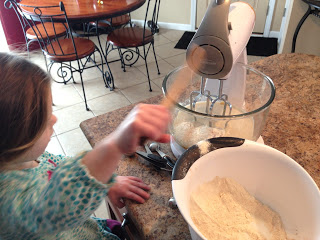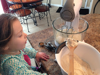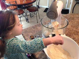 Mix the dry ingredients into the wet ingredients in the bowl.